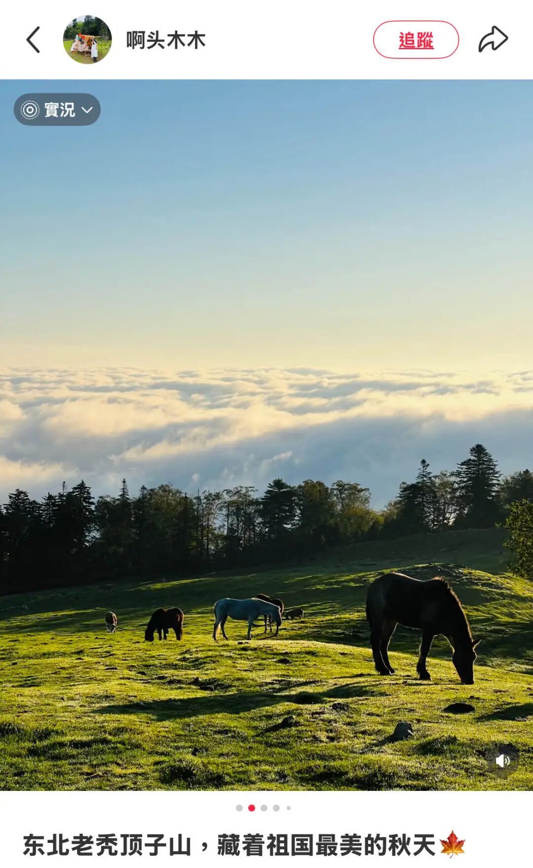 有成片草原的地方,其他城市叫“长鸟岛”“鸳鸯草场”“奇冠顶”,东北人则管他们的草原叫“老秃顶子山”,乍一听还以为这地方人烟稀少,也没什么植物,光秃秃的,实则这里草原和树林相映,景色开阔壮丽。
